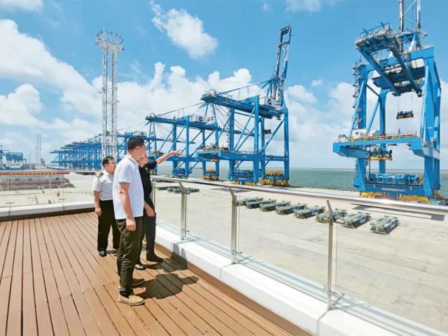 图为2023年7月12日,审计署驻太原特派员办事处在海关审计中,深入广西钦州港自动化码头,重点关注进境货物后续监管,实地走访进境货物加工企业,调查了解海铁联运运行等情况。 审计署供图