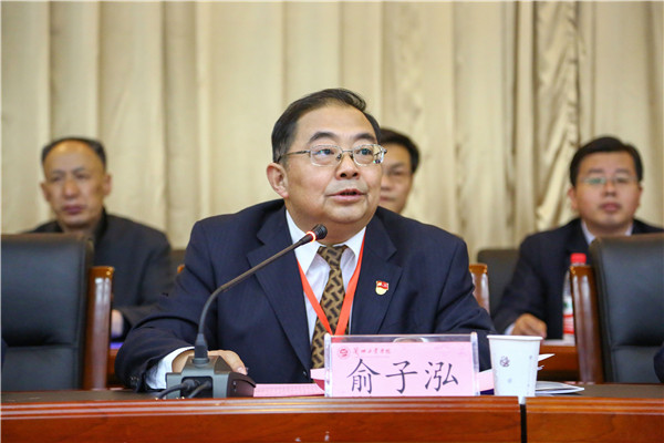 俞子泓号召全校上下切实担负起历史赋予我们的光荣使命,以永不懈怠的精神状态和一往无前的奋斗姿态,不忘初心、牢记使命,求真务实、开拓进取,继续向着创建特色鲜明、优势突出、在省内有重要影响的应用技术大学的宏伟目标奋勇前进!