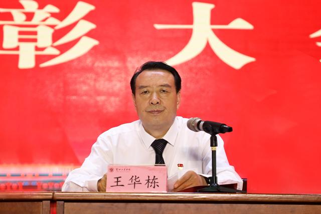 王华栋主持大会时强调,学校隆重召开庆祝中国共产党成立100周年表彰大会,缅怀党的光荣历史,讴歌党的丰功伟绩,表达对党的深情厚谊,通过表彰优秀共产党员、优秀党务工作者、先进基层党组织、脱贫攻坚先进个人和先进集体,引导广大师生党员坚持以习近平新时代中国特色社会主义思想为指导,进一步增强“四个意识”,坚定“四个自信”,做到“两个维护”。广大党员要以“七一勋章”获得者为榜样,坚定理想信念,弘扬奋斗精神,见贤思齐,团结拼搏,为推进我校转型发展凝聚力量。